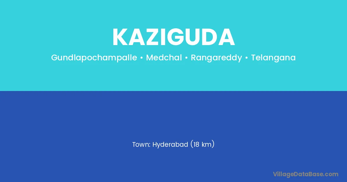 Hyderabad (18 km) is the nearest town to Kaziguda village for major economic activities and is located approximately 18 km away.