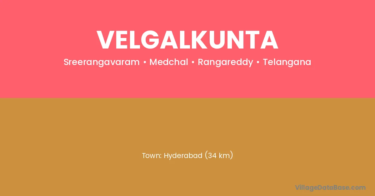 Hyderabad (34 km) is the nearest town to Velgalkunta village for major economic activities and is located approximately 34 km away.