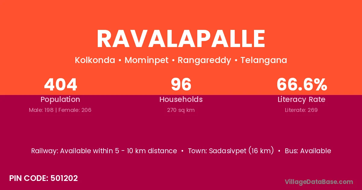According to Census 2011 information, the village code of Ravalapalle village is 501202.