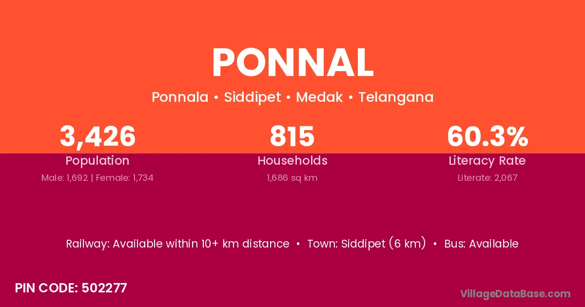 Hyderabad (32 km) is the nearest town to Ponnal village for major economic activities and is located approximately 32 km away.