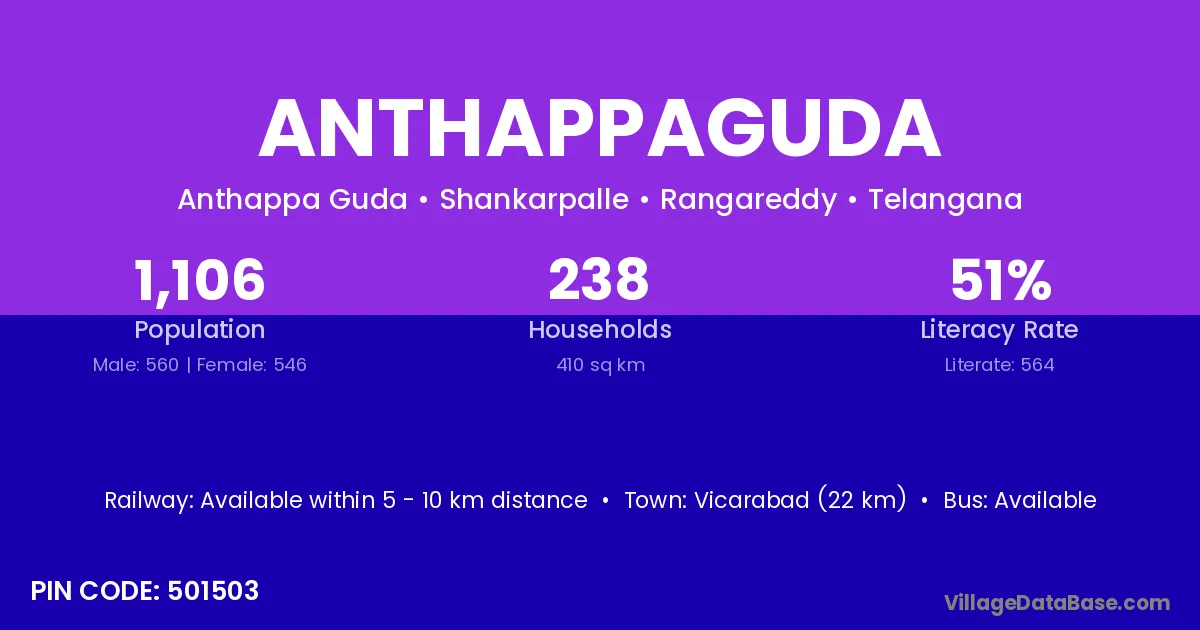 Anthappaguda village has a total population of 1,106 people, of which 560 are males and 546 are females.