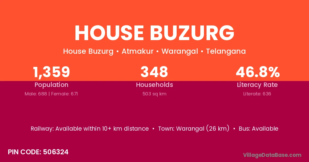Warangal (26 km) is the nearest town to House Buzurg village for major economic activities and is located approximately 26 km away.