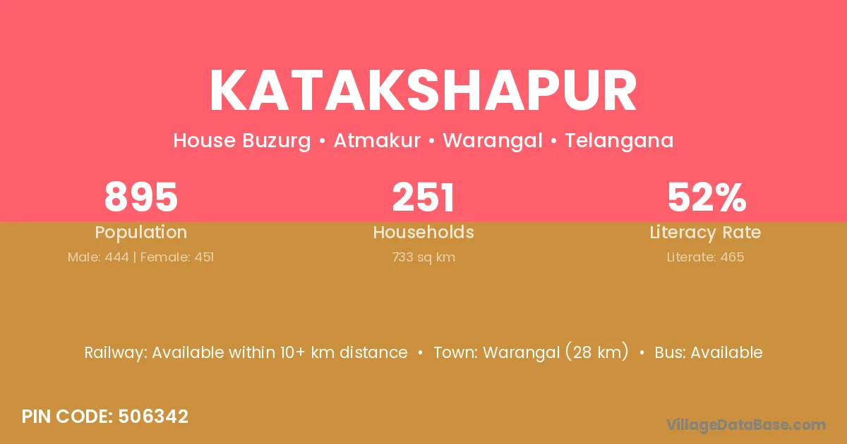 According to Census 2011 information, the village code of Katakshapur village is 506342.