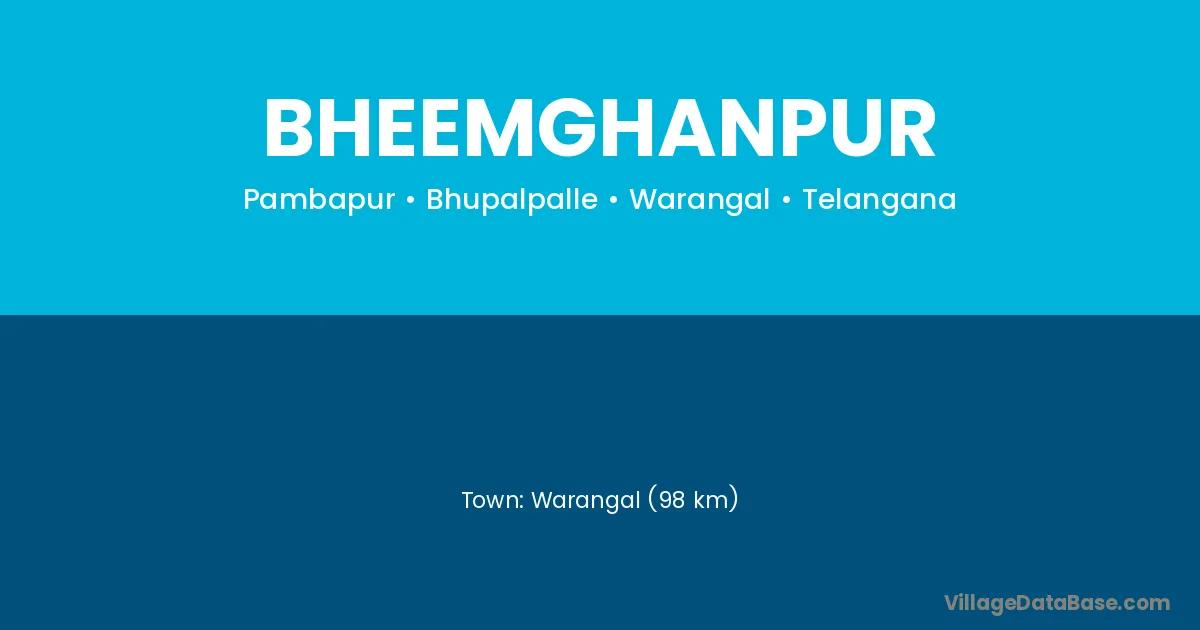 Warangal (98 km) is the nearest town to Bheemghanpur village for major economic activities and is located approximately 98 km away.