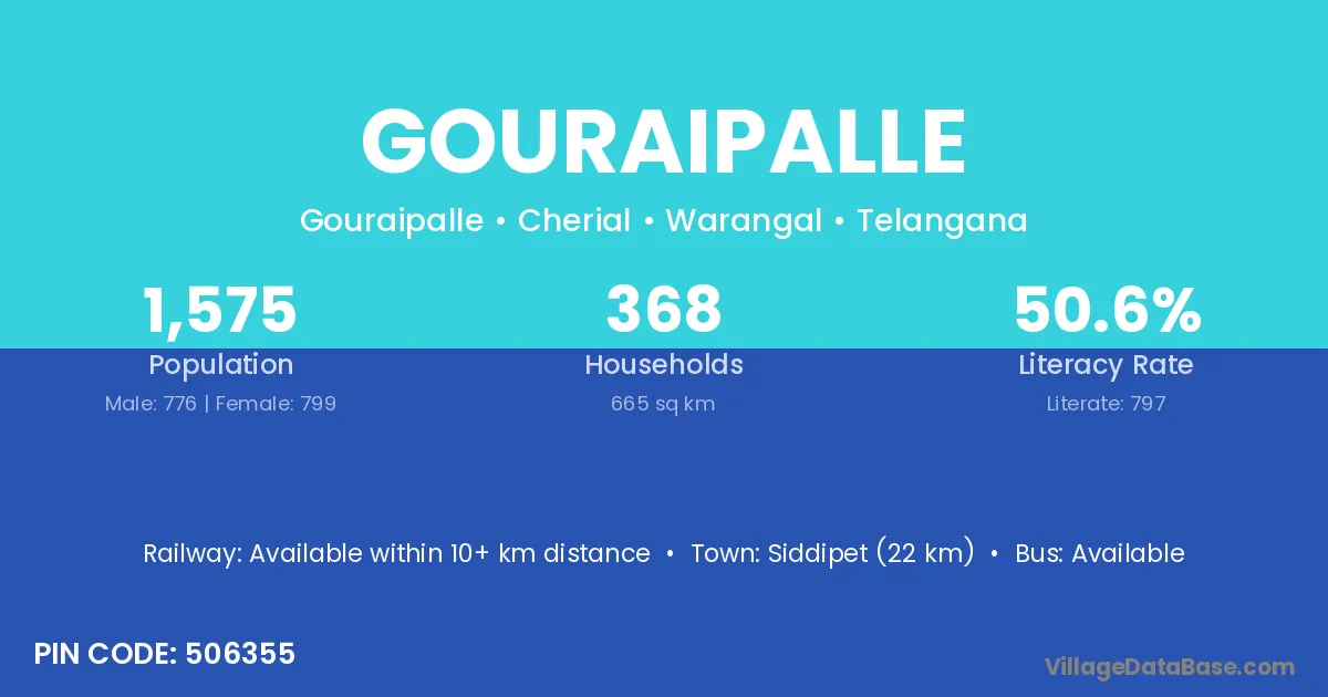 According to Census 2011 information, the village code of Gouraipalle village is 506355.
