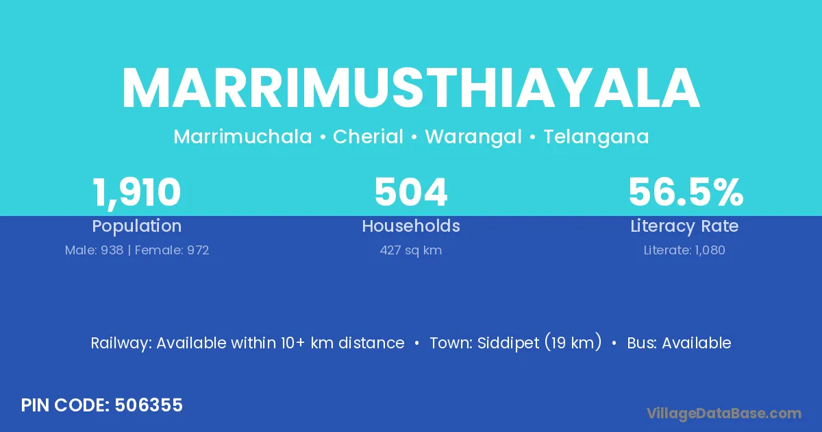 According to Census 2011 information, the village code of Marrimusthiayala village is 506355.