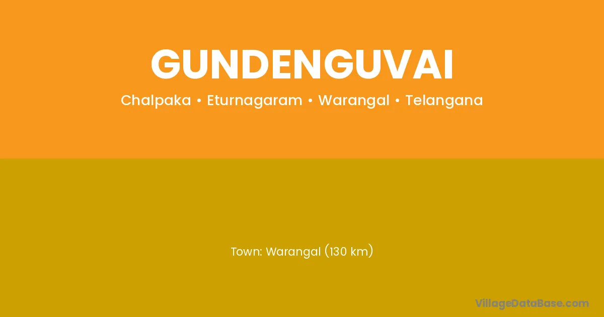 Warangal (130 km) is the nearest town to Gundenguvai village for major economic activities and is located approximately 130 km away.