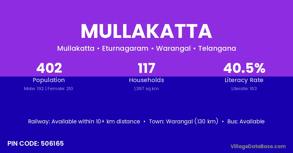 According to Census 2011 information, the village code of Mullakatta village is 506165.