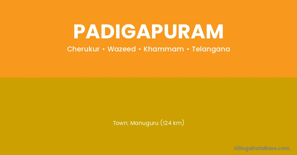 Warangal (150 km) is the nearest town to Padigapuram village for major economic activities and is located approximately 150 km away.