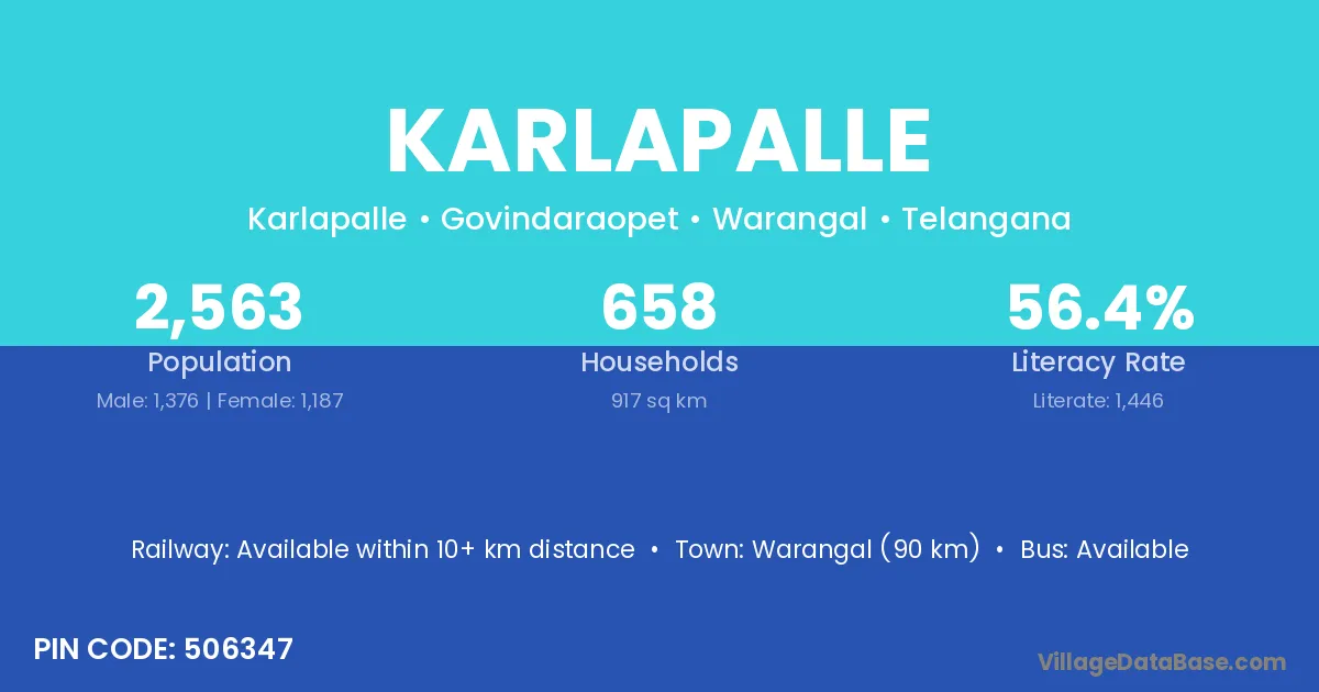 According to Census 2011 information, the village code of Karlapalle village is 506347.