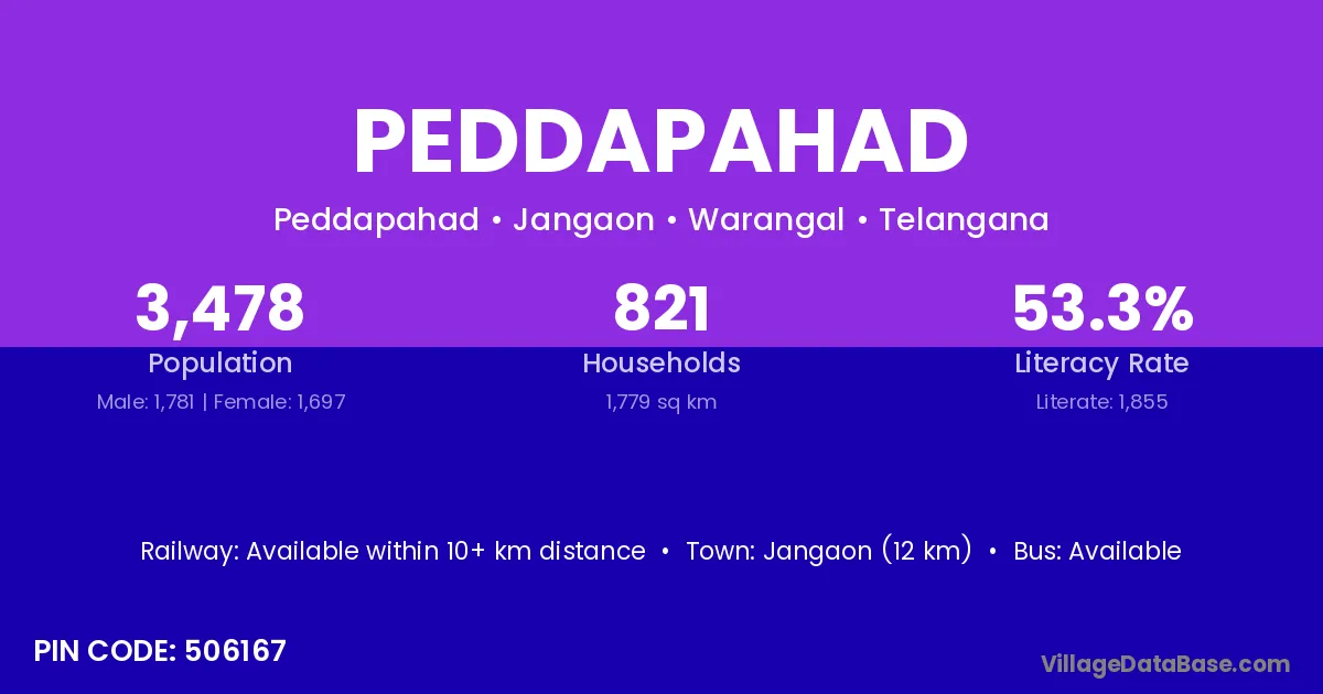 Peddapahad village has a total population of 3,478 people, of which 1,781 are males and 1,697 are females.