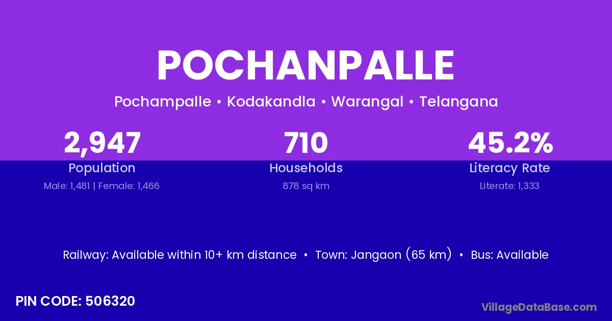 According to Census 2011 information, the village code of Pochanpalle village is 506320.