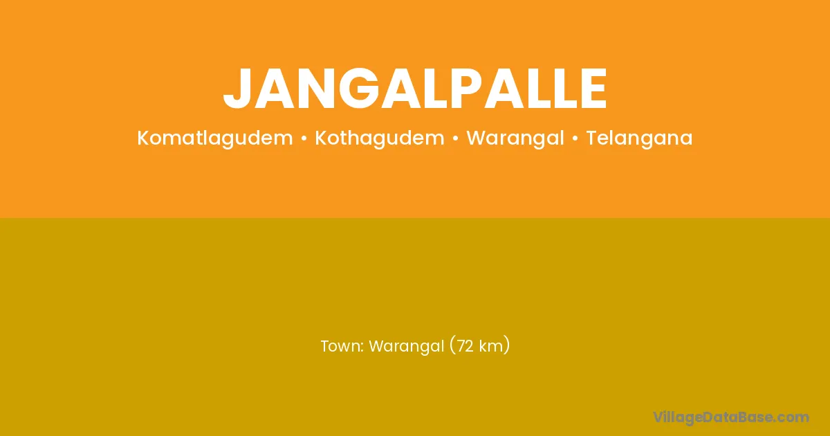 Warangal (72 km) is the nearest town to Jangalpalle village for major economic activities and is located approximately 72 km away.