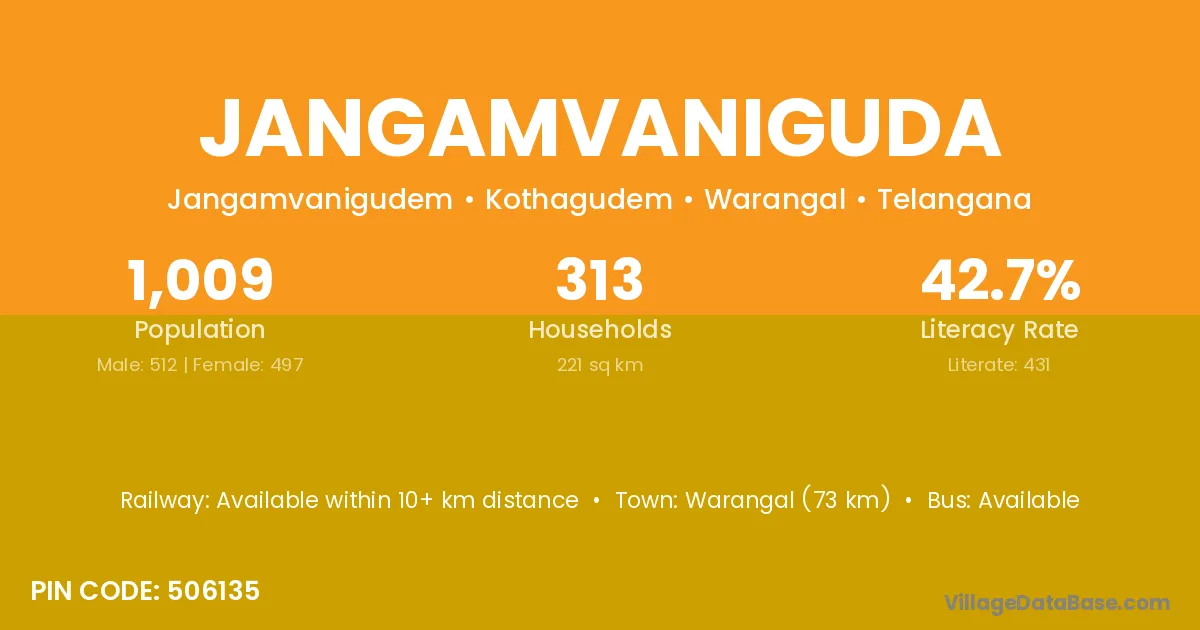 According to Census 2011 information, the village code of Jangamvaniguda village is 506135.