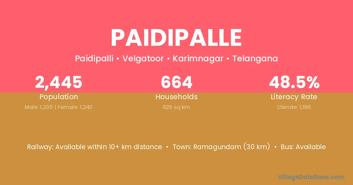 Warangal (40 km) is the nearest town to Paidipalle village for major economic activities and is located approximately 40 km away.