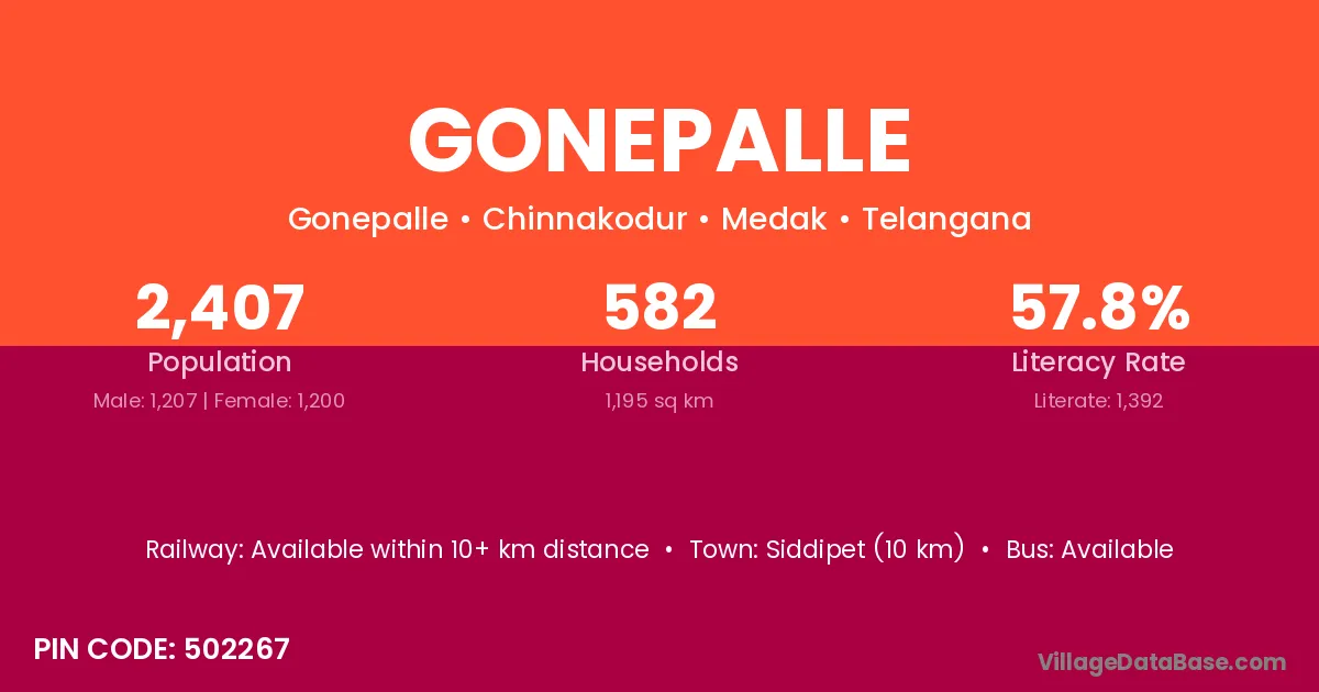 According to Census 2011 information, the village code of Gonepalle village is 506344.