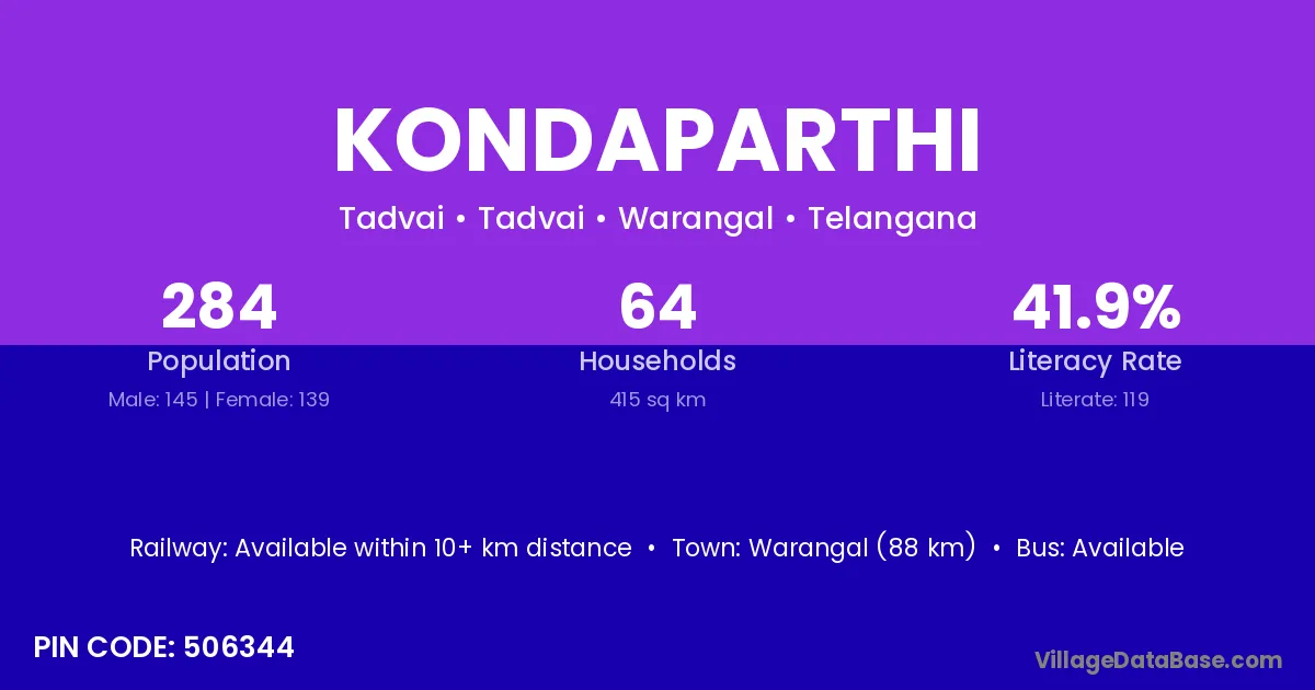 Kondaparthi village has a total population of 284 people, of which 145 are males and 139 are females.