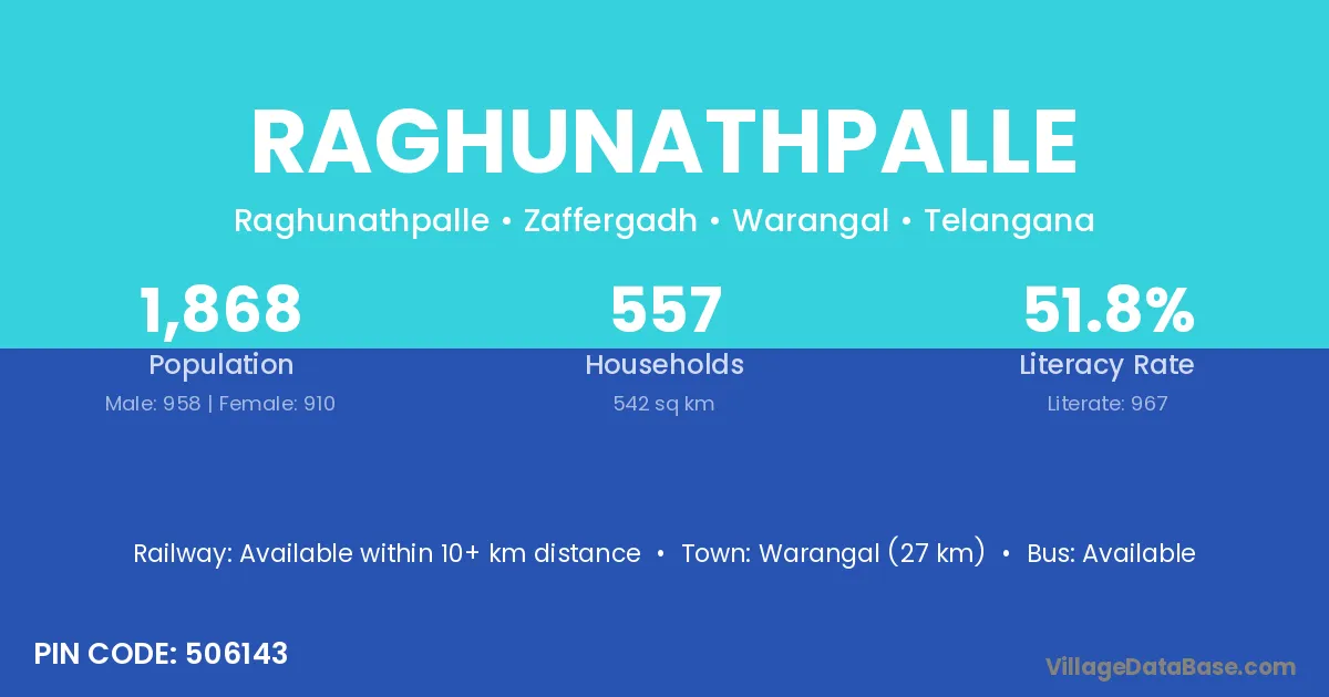 According to Census 2011 information, the village code of Raghunathpalle village is 506143.