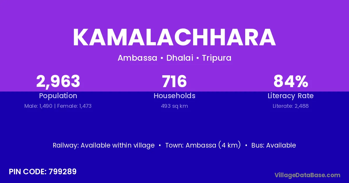 Ambassa (4 km) is the nearest town to Kamalachhara village for major economic activities and is located approximately 4 km away.
