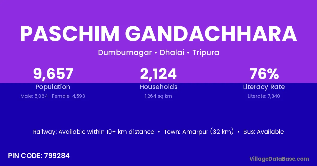 Amarpur (32 km) is the nearest town to Paschim Gandachhara village for major economic activities and is located approximately 32 km away.