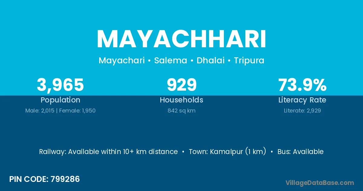 Kamalpur (1 km) is the nearest town to Mayachhari village for major economic activities and is located approximately 1 km away.