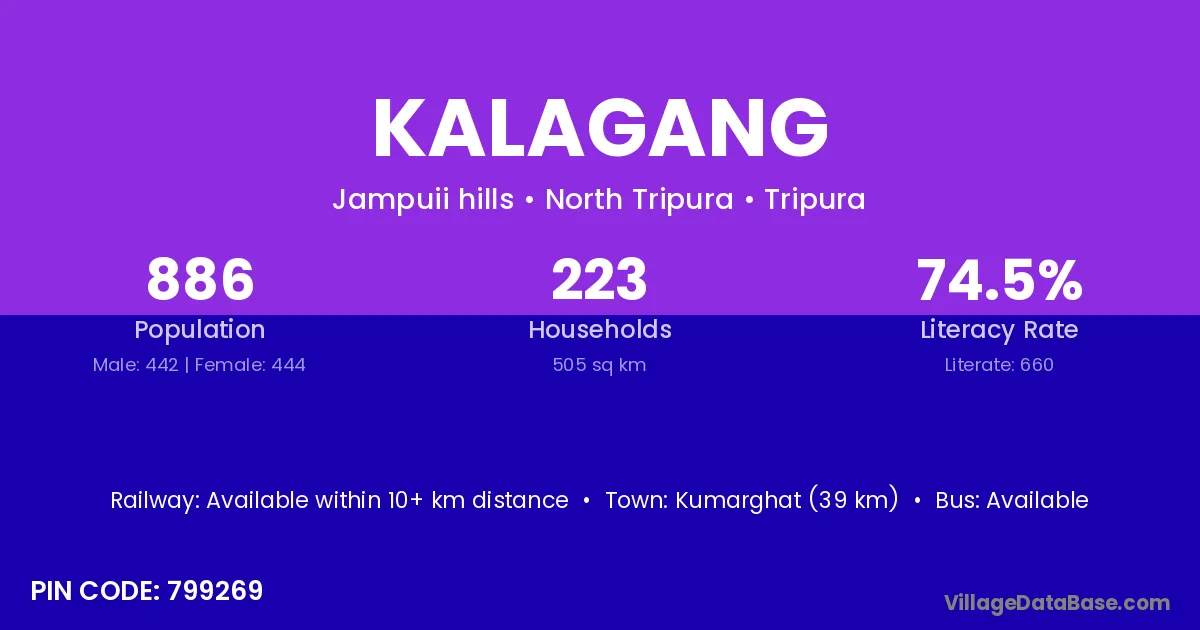 Kumarghat (39 km) is the nearest town to Kalagang village for major economic activities and is located approximately 39 km away.