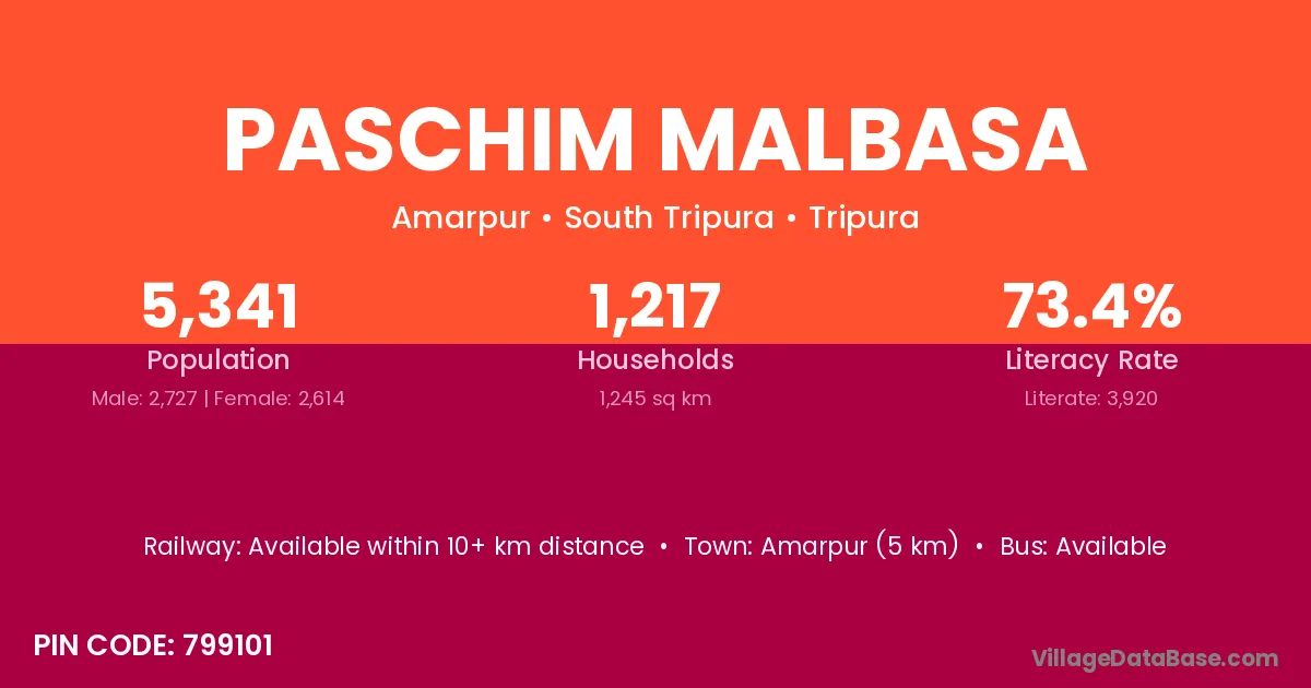 Amarpur (5 km) is the nearest town to Paschim Malbasa village for major economic activities and is located approximately 5 km away.