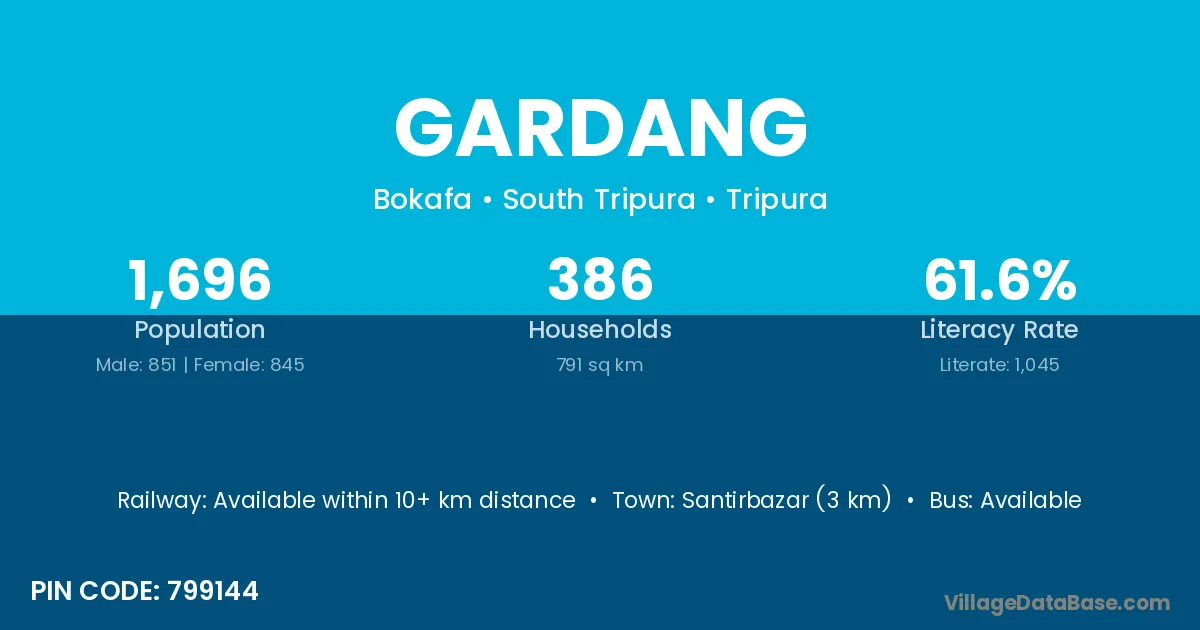 Gardang village is located in the Bokafa Subdivision of the South Tripura district in Tripura .