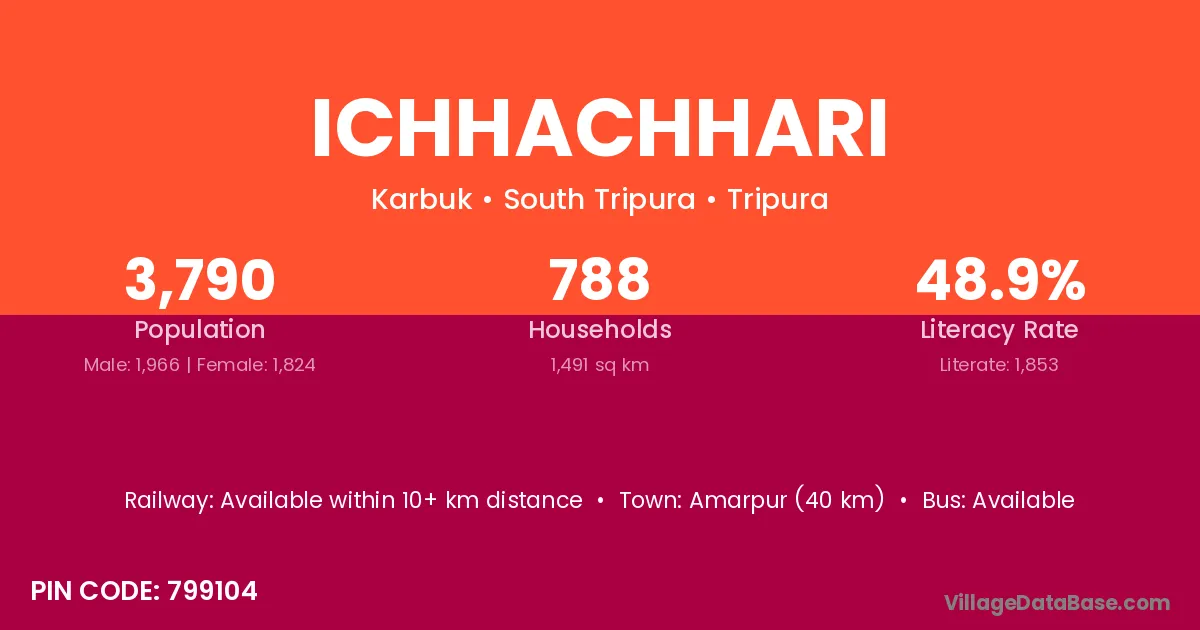 Amarpur (40 km) is the nearest town to Ichhachhari village for major economic activities and is located approximately 40 km away.