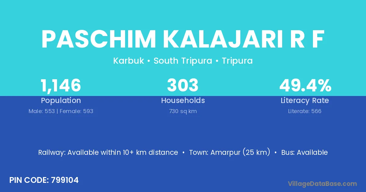 Paschim Kalajari R F village has a total population of 1,146 people, of which 553 are males and 593 are females.