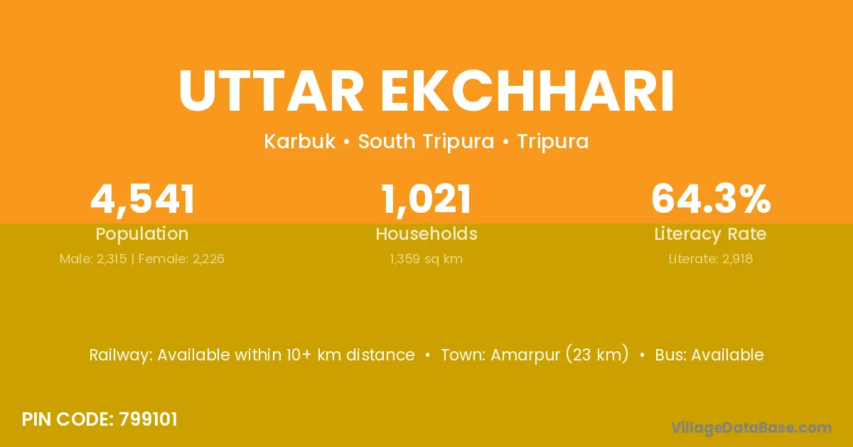 Amarpur (23 km) is the nearest town to Uttar Ekchhari village for major economic activities and is located approximately 23 km away.