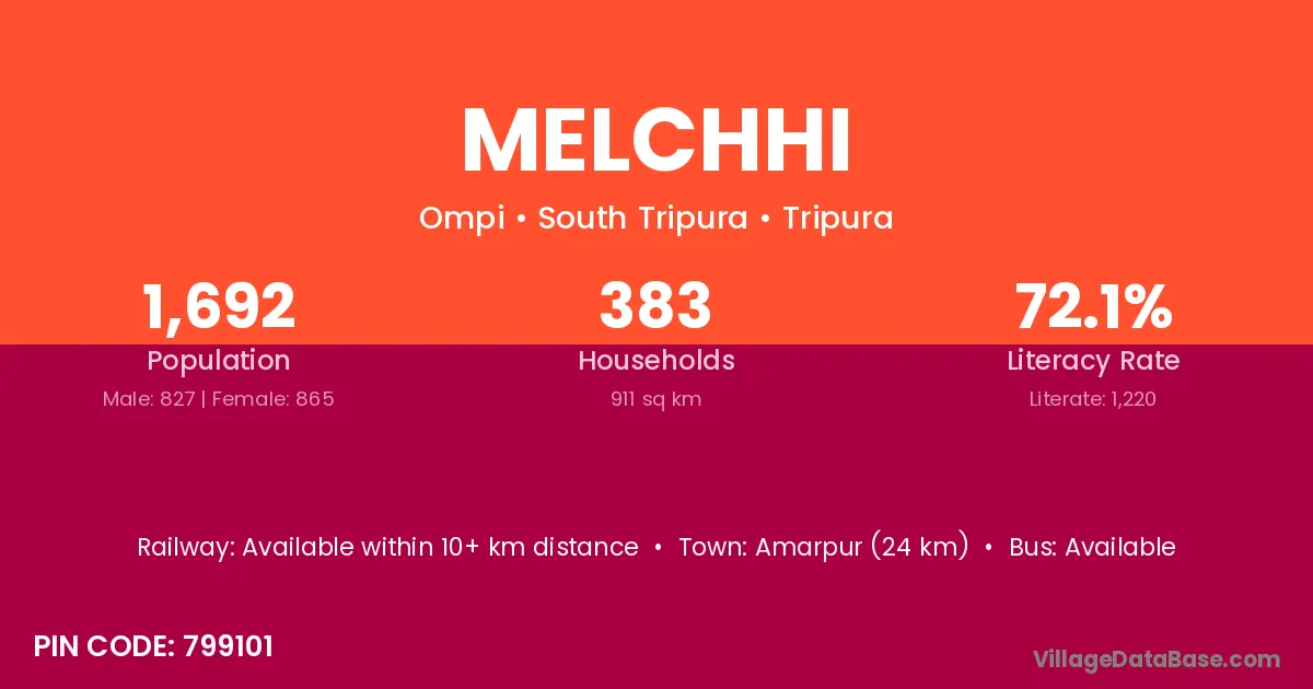 Amarpur (24 km) is the nearest town to Melchhi village for major economic activities and is located approximately 24 km away.