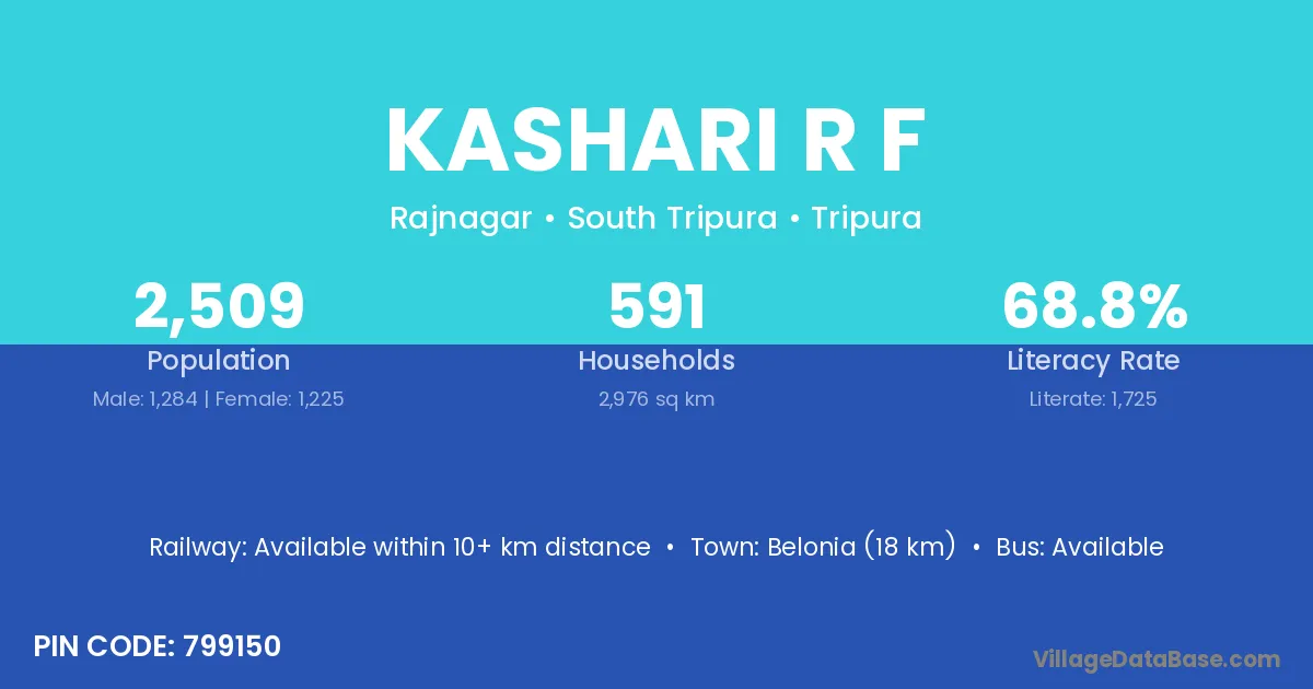 Belonia (18 km) is the nearest town to Kashari R F village for major economic activities and is located approximately 18 km away.