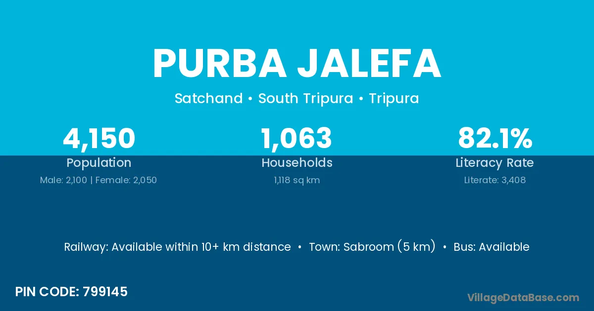 Sabroom (5 km) is the nearest town to Purba Jalefa village for major economic activities and is located approximately 5 km away.
