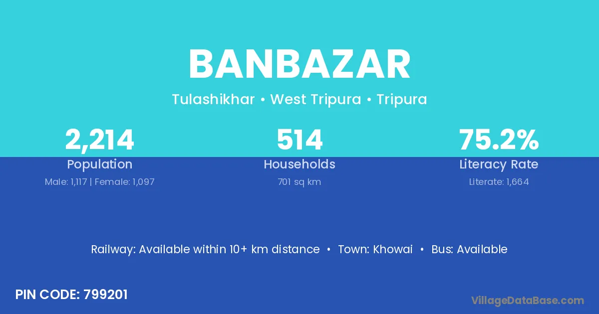 According to Census 2011 information, the village code of Banbazar village is 799201.
