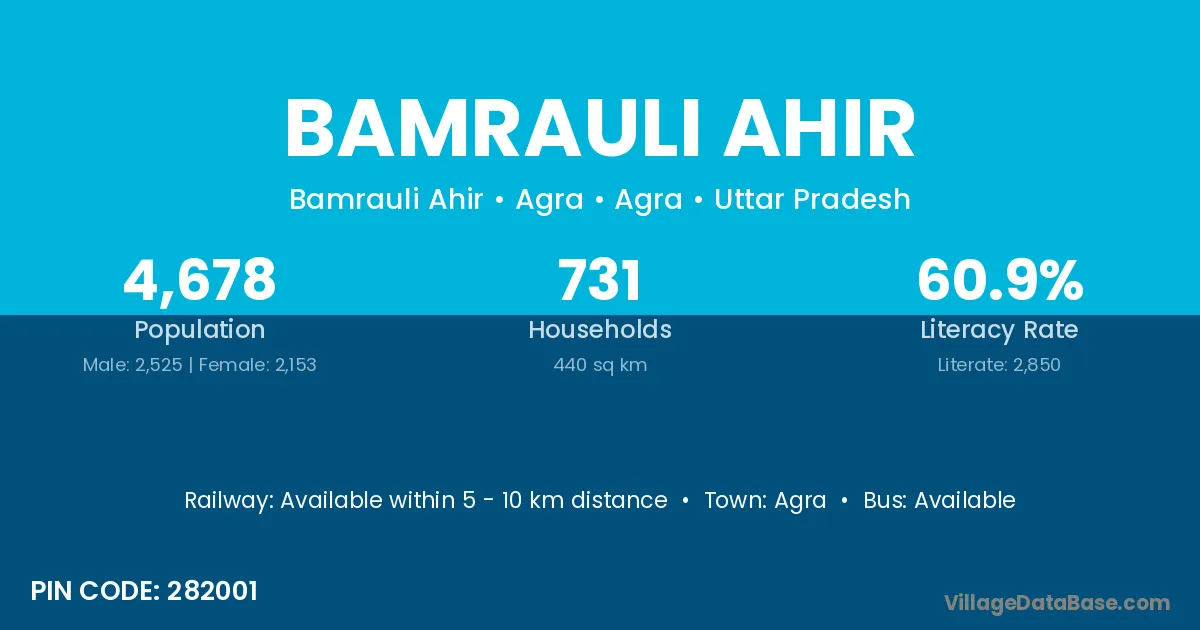 Agra is the nearest town to Bamrauli Ahir village for major economic activities