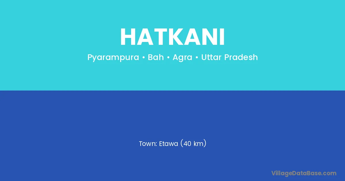Etawa (40 km) is the nearest town to Hatkani village for major economic activities and is located approximately 40 km away.
