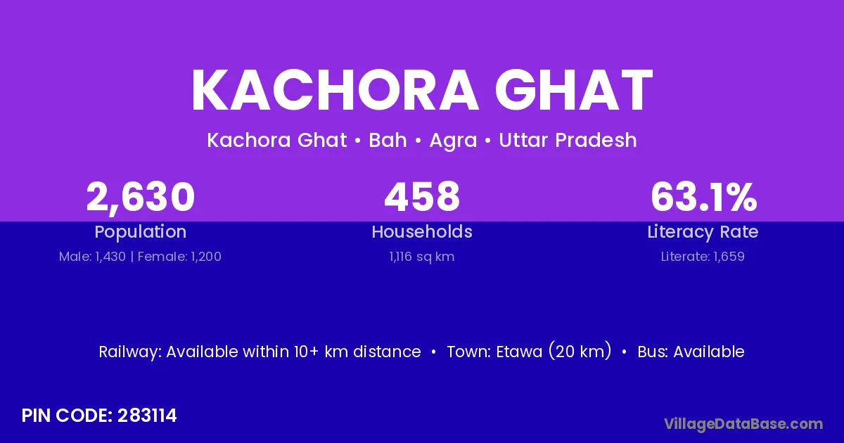 Etawa (20 km) is the nearest town to Kachora Ghat village for major economic activities and is located approximately 20 km away.