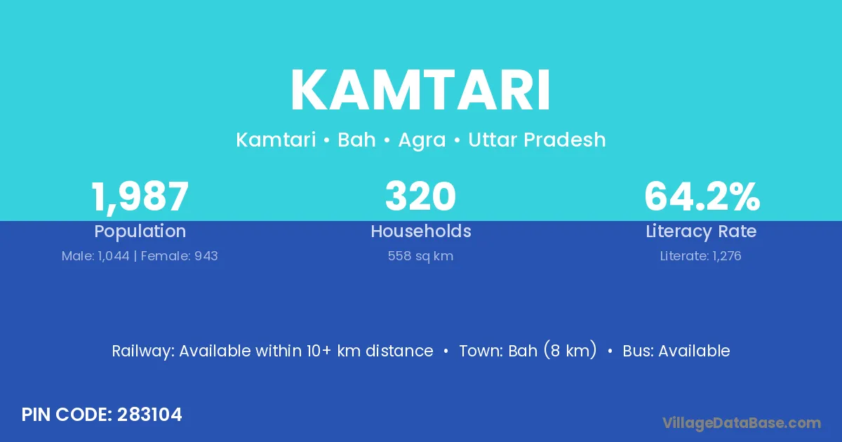 Bah (8 km) is the nearest town to Kamtari village for major economic activities and is located approximately 8 km away.