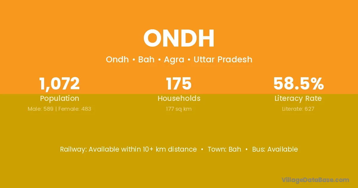 Bah is the nearest town to Ondh village for major economic activities