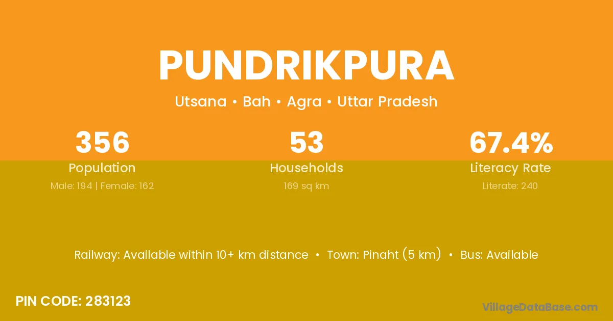 Pundrikpura village has a total population of 356 people, of which 194 are males and 162 are females.
