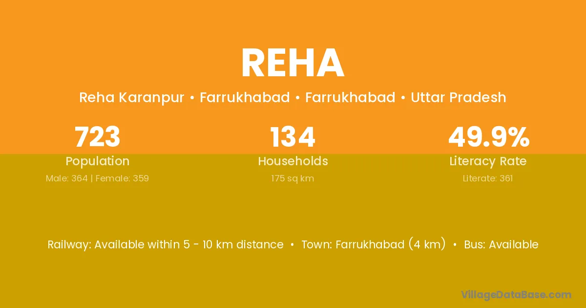 Pinahat (20 km) is the nearest town to Reha village for major economic activities and is located approximately 20 km away.