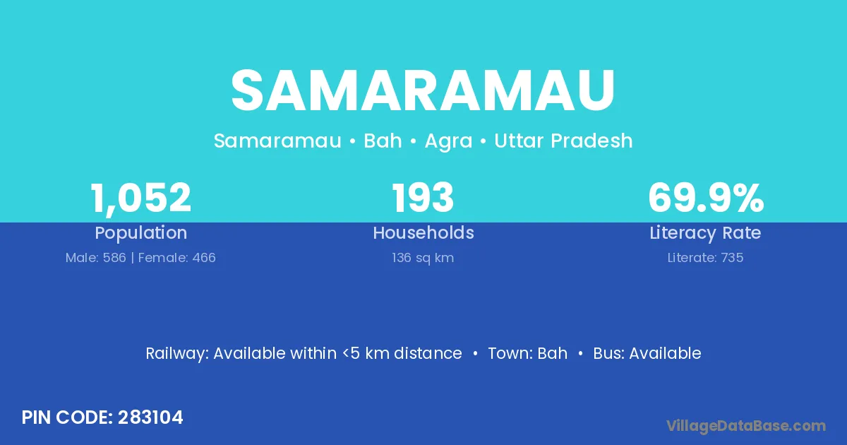 Samaramau village is located in the Bah Tehsil of the Agra district in Uttar Pradesh .