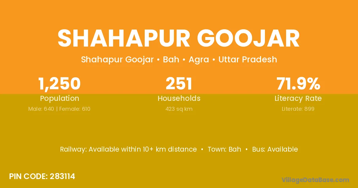 Bah is the nearest town to Shahapur Goojar village for major economic activities