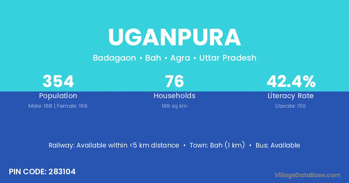 Bah (1 km) is the nearest town to Uganpura village for major economic activities and is located approximately 1 km away.