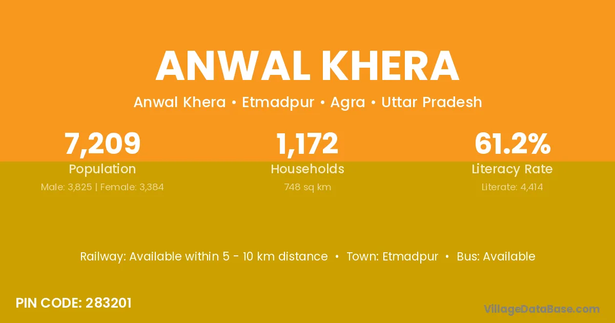 Etmadpur is the nearest town to Anwal Khera village for major economic activities