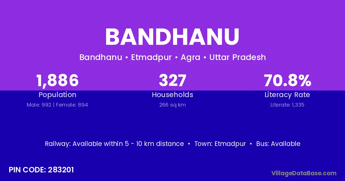 Etmadpur is the nearest town to Bandhanu village for major economic activities