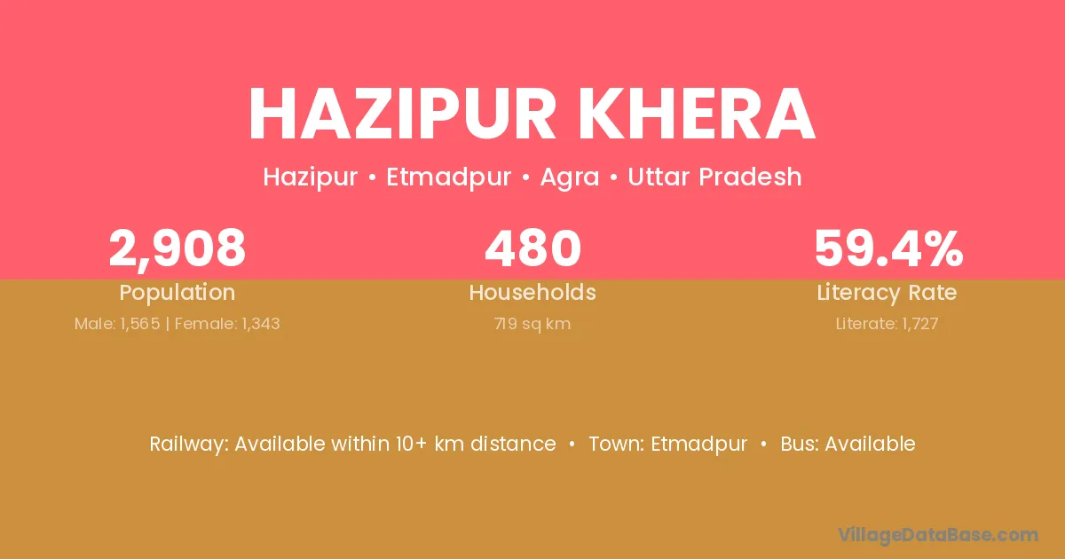 Hazipur Khera village has a total population of 2,908 people, of which 1,565 are males and 1,343 are females.