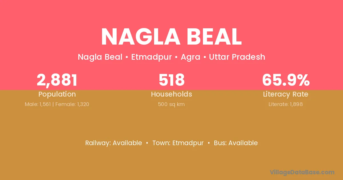 Nagla Beal village has a total population of 2,881 people, of which 1,561 are males and 1,320 are females.