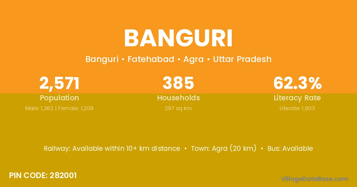 Agra (20 km) is the nearest town to Banguri village for major economic activities and is located approximately 20 km away.